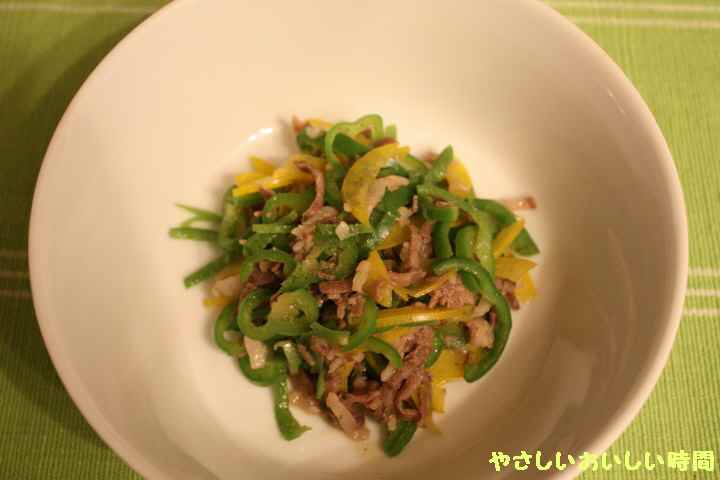 材料 牛肉 ピーマン パプリカ黄 にんにく しょうが オリーブオイル