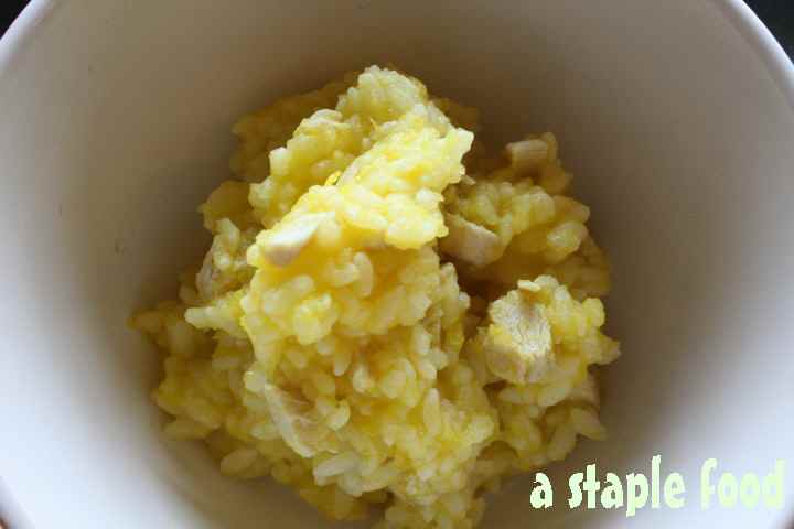 作り方は かぼちゃを煮てささみ、ごはん、大根おろしを加えて
