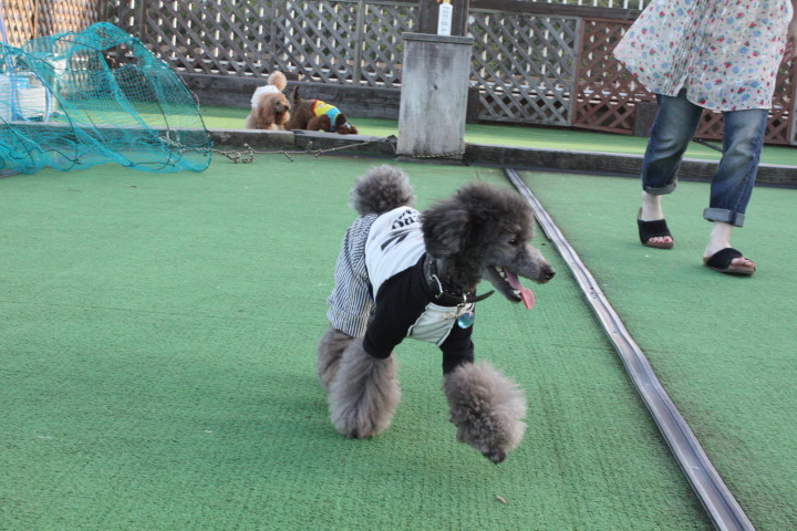 ドッグランに到着です。たくさんのわんちゃんたちもいてみんなそれぞれ