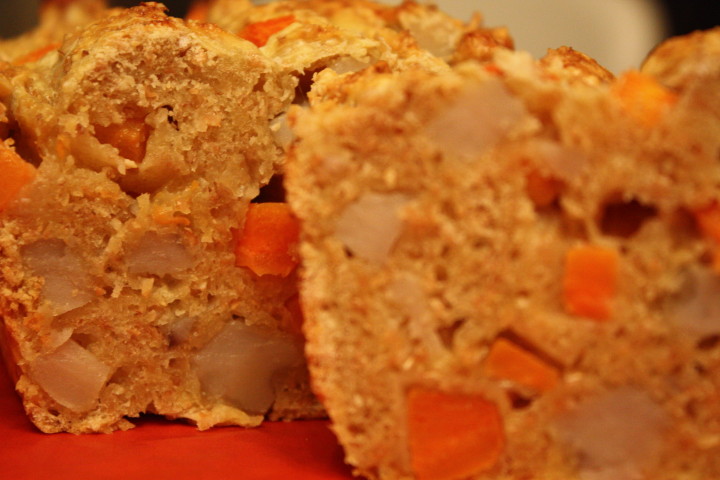 今日のおいしい時間は栄養たっぷり主食にもOK根菜ブレッドです。