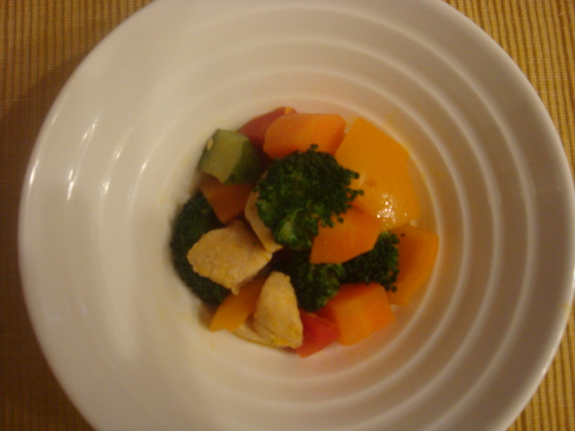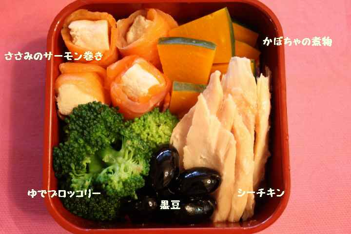 にんじん40g パプリカ黄、オレンジ30gづつ 鶏ささみ2本 ブロッコリー50g