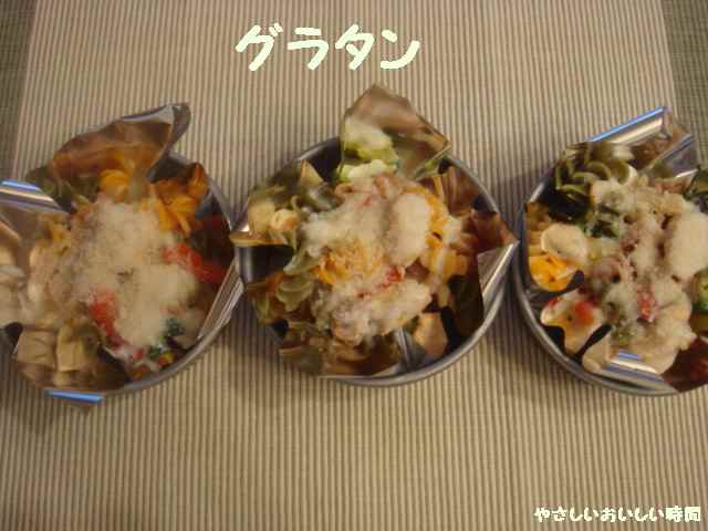 今日のごはんは昨日の作り置きをグラタンにしました。