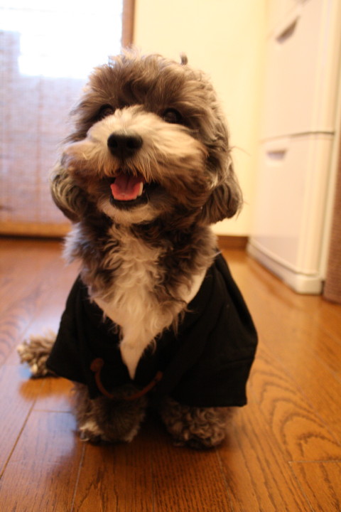 着た瞬間よほどいやだったのか撮影のお座りを断固!ぼくは拒否しますの