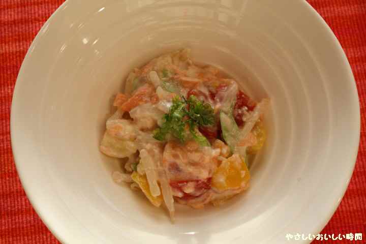 今日のごはんはサーモンサラダです。