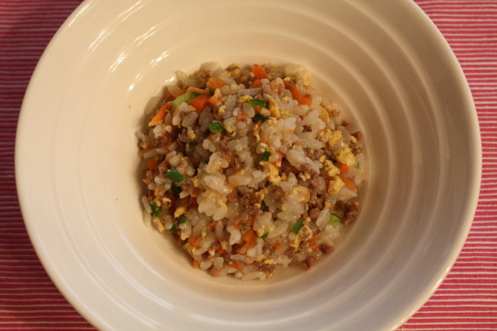 パラパラの焼き飯になります。人間用だとお水の代わりにお酒でくぐらせると