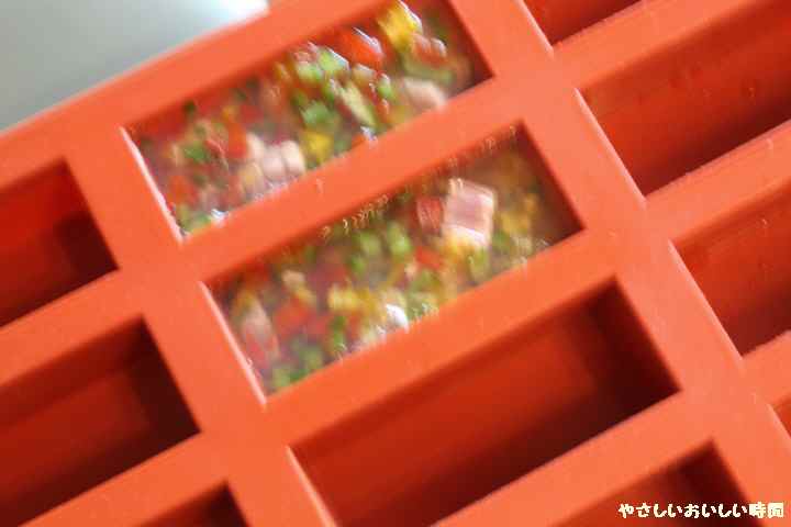 加えて混ぜ合わせて下写真のシリコン型に具材を適量入れある程度冷ました