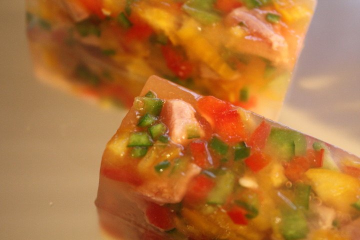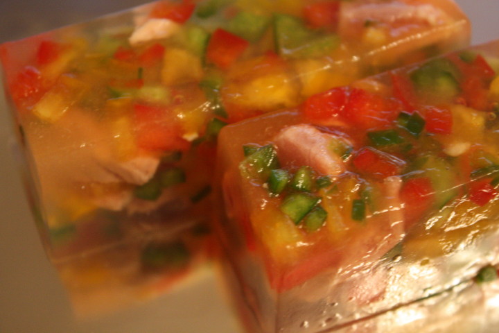 今日のごはんはマグロの寒天よせです