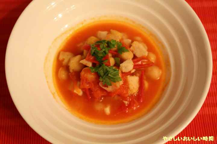 今日のごはんはひよこ豆のトマトスープです。