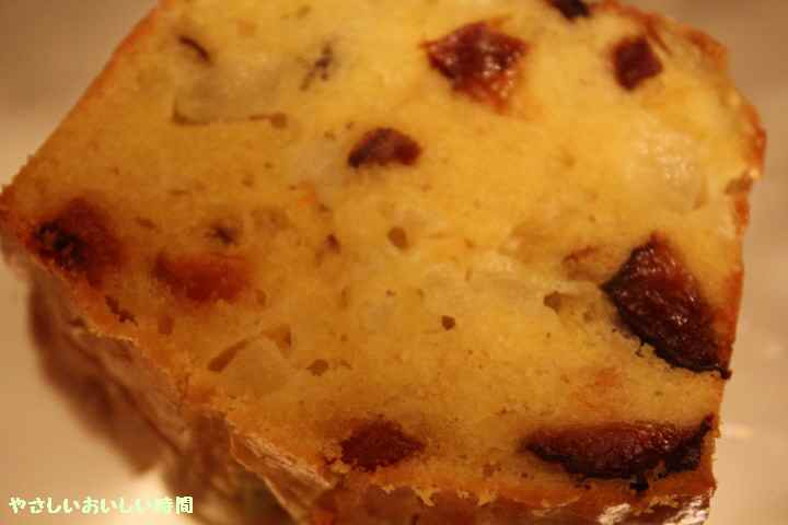 洋ナシとプルーンは細かく切って加えてさらに混ぜ合わせて型に流し込みます