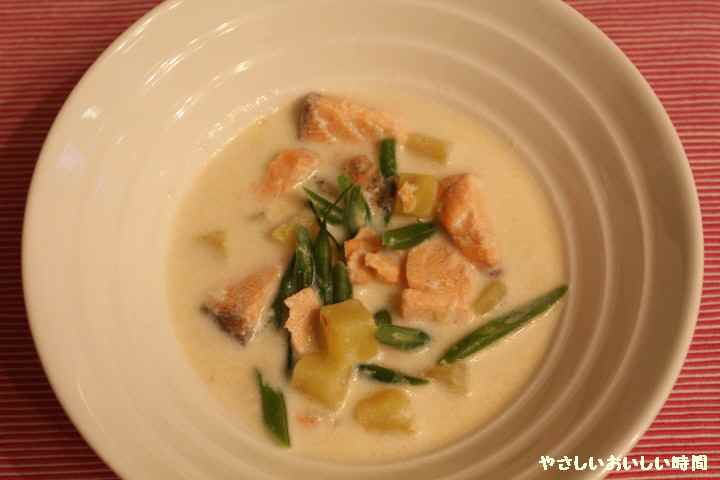 今日のごはんはサーモンのミルク煮です。