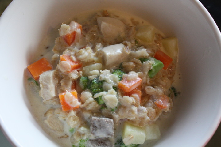 今日のごはんはシチューを作りました。オートミールをたっぷり入れた