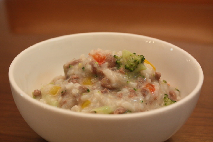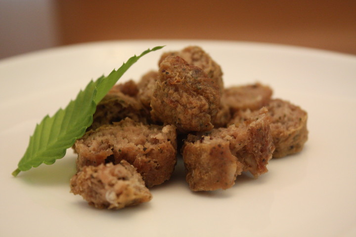 鶏の軟骨、もも肉、骨ごとすりつぶした栄養たっぷり、ハーブ入りです。
