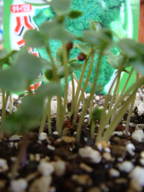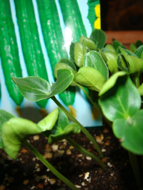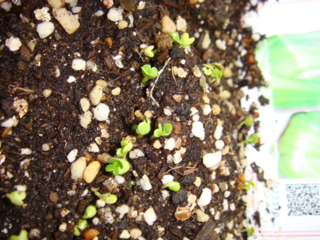 早速今日芽がでました。上はきゅうり下はチンゲン菜