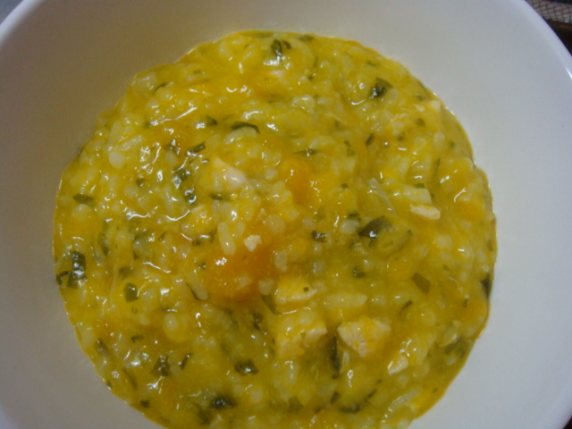 今日のごはんはかぼちゃのおかゆです