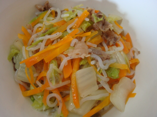 材料は 牛肉 白菜 にんじん 糸こんにゃく