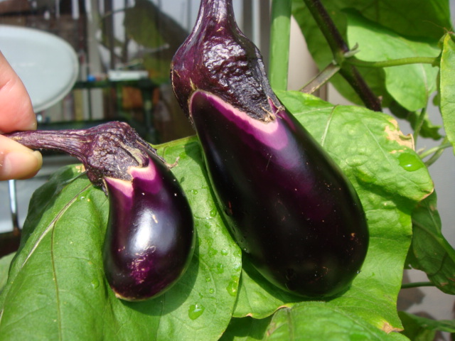 大きくなったなすびの収獲です。