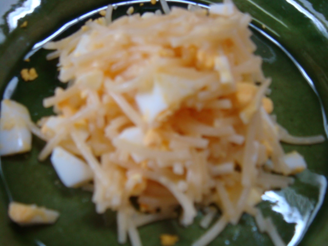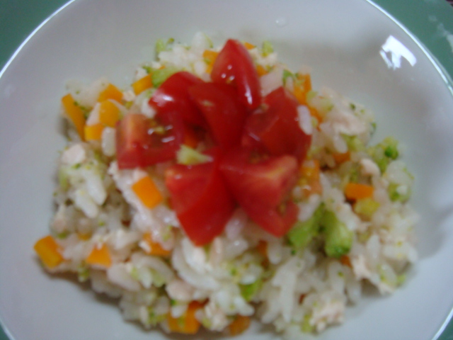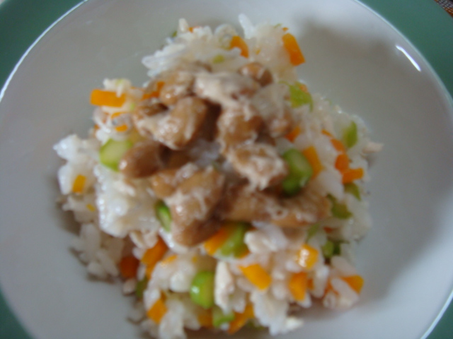 おかゆ仕立てで具材を混ぜて出来上がりです